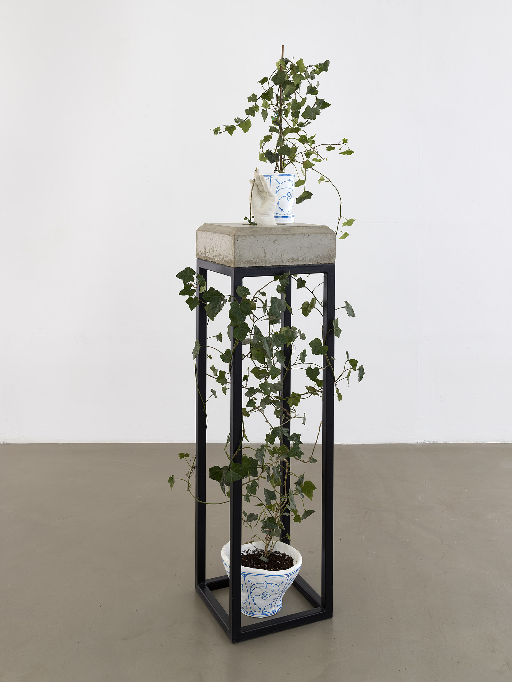 vine plant, soil, concrete, steel, plaster, oil paint, acrylic paint, ceramics